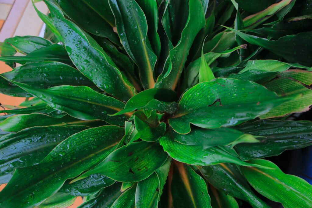 Golden pothos (Epipremnum aureum) is one of the world’s most beloved indoor plants. Its long vines, with heart-shaped green leaves sometimes marbled with yellow or white, can climb several metres if given support. It is very hardy and requires almost no care, making it perfect for hotels and homes. It also helps purify the air in enclosed spaces.