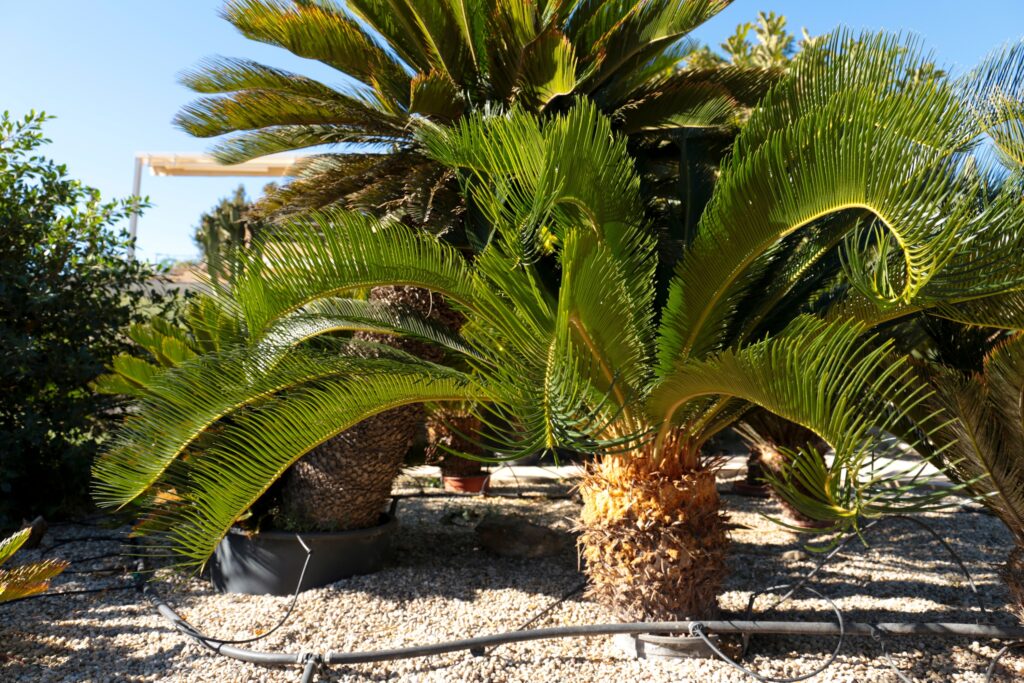 The Fern-palm (Cycas revoluta) is not a palm tree, although it may look like one; it is in fact a descendant of an ancient plant that already existed in the time of the dinosaurs. Its short trunk and stiff, feather-shaped leaves form a very decorative crown. It is highly prized as an ornamental plant in gardens and also as a houseplant. However, care must be taken: all parts of the plant are toxic if ingested, particularly for pets.