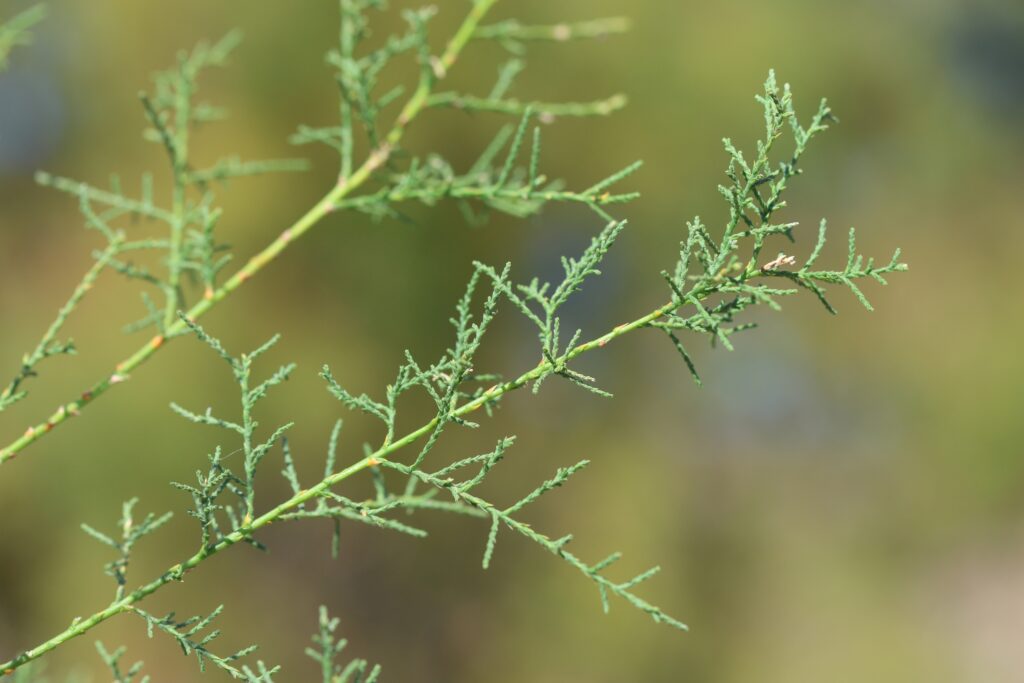 The Tamarisk (Tamarix canariensis) is a small tree that usually grows near streams, depressions and saline soils. Its reddish branches and thin leaves give it a light and elegant appearance. It blooms in spring and summer with delicate pink flowers. It is a hardy species, capable of thriving in coastal areas and difficult soils, bringing freshness to the landscape.